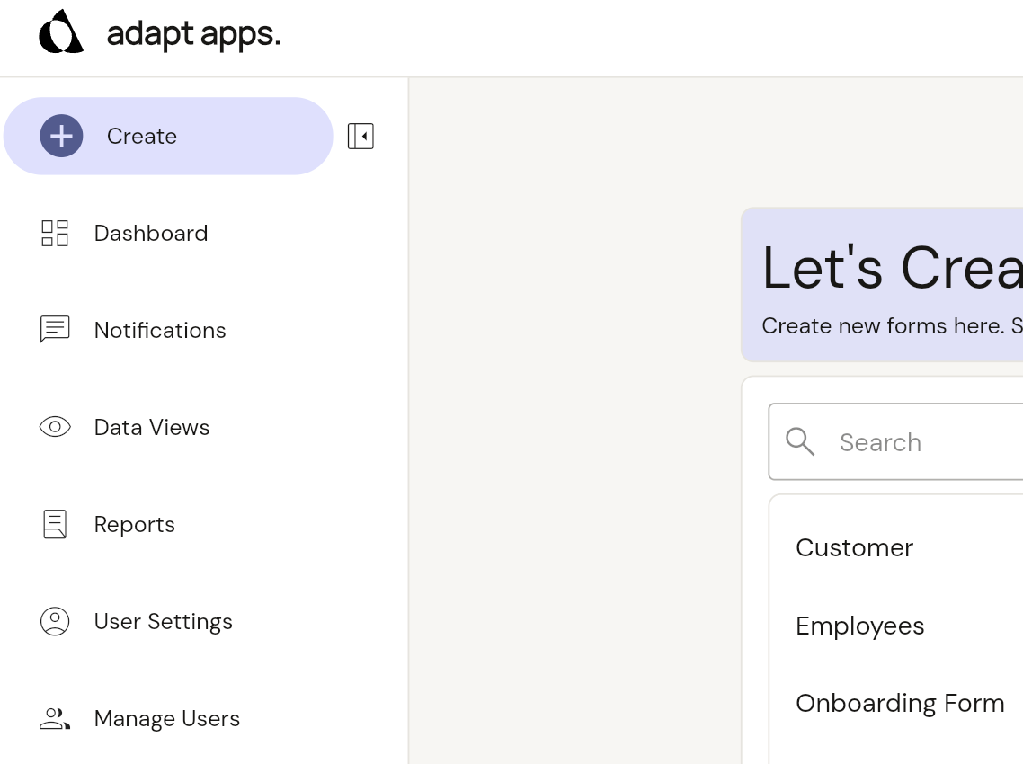Navigate to the Create Page: Click on the “Create” button located in the top left-hand corner of the interface.